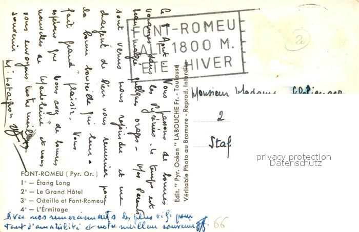 13483465 carte postale Font-Romeu-Odeillo-Via Etang Long Grand Hotel Odeillo Ermitage postalisch gelaufen Erhaltung siehe scans [FriedD77] KatCode: 11170066366124