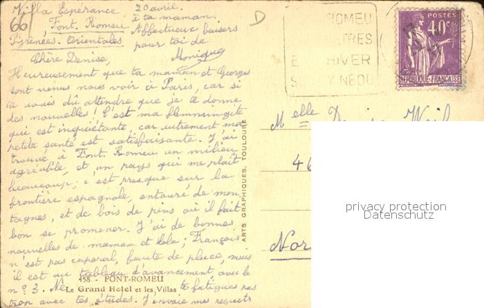 11716150 carte postale Font-Romeu-Odeillo-Via Grand Hotel et Villas postalisch gelaufen Erhaltung siehe scans KatCode: 11170066366124