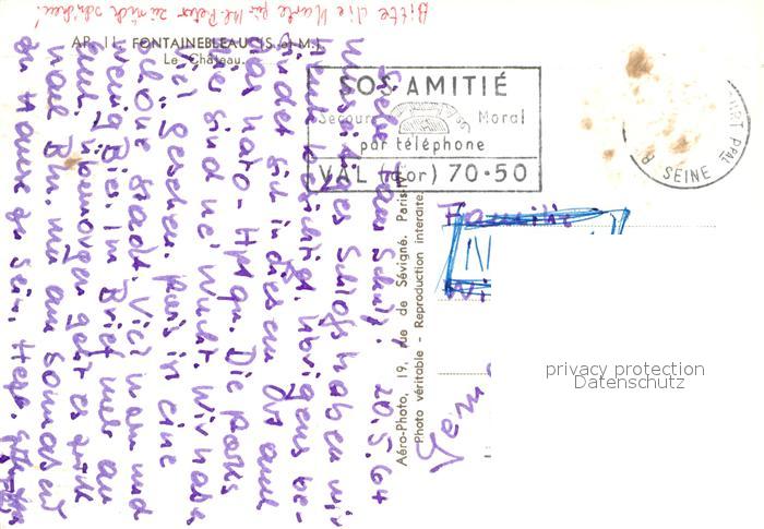13092937 carte postale Fontainebleau Seine et Marne Fliegeraufnahme Chateau postalisch gelaufen Erhaltung siehe scans [NatalD47] KatCode: 11170077477186