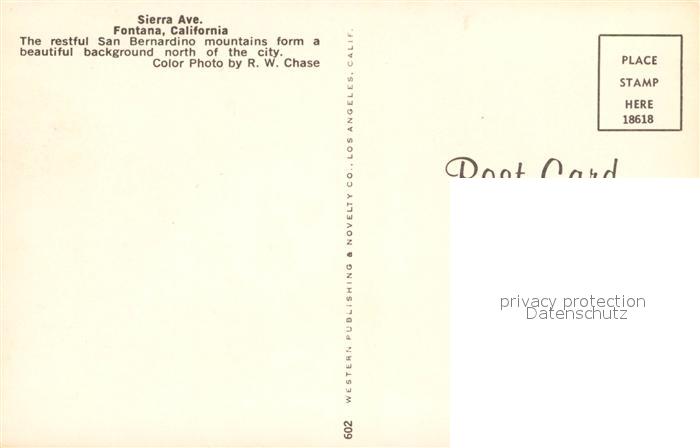 72944052 old postcard Fontana California Sierra Avenue postalisch gelaufen Erhaltung siehe scans [WerneD78] KatCode: 14140050000000