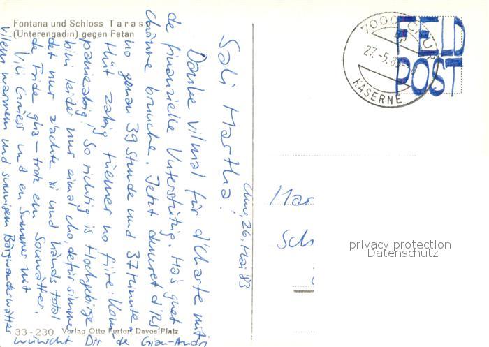 13729482 alte Postkarte Fontana GR Fliegeraufnahme mit Schloss Tarasp und Fetan Feldpost postalisch gelaufen Erhaltung siehe scans [WerneD78] KatCode: 11470100325168