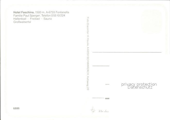 72182427 Fontanella Hotel Faschina postalisch nicht gelaufen Erhaltung siehe scans KatCode: 11390341080109