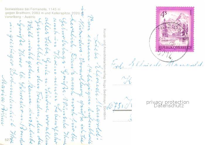 72758917 alte Postkarte Fontanella Seewaldsee Gasthaus Seewald postalisch gelaufen Erhaltung siehe scans [WerneD78] KatCode: 11390341080109