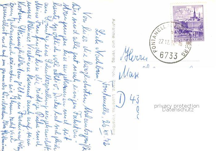 72848824 alte Postkarte Fontanella Skigebiet Grosswalsertal Fliegeraufnahme postalisch gelaufen Erhaltung siehe scans [FriedD77] KatCode: 11390341080109