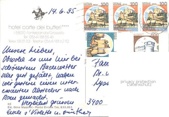 old postcard Fonteblanda Hotel Corte dei Butteri Strand postalisch gelaufen Erhaltung siehe scans