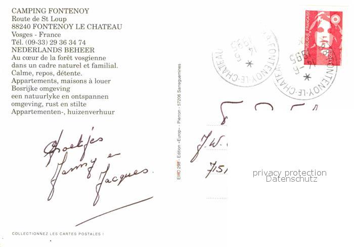 12680666 carte postale Fontenoy-le-Chateau Camping Fontenoy Details postalisch gelaufen Erhaltung siehe scans [WerneD78] KatCode: 11170088188176