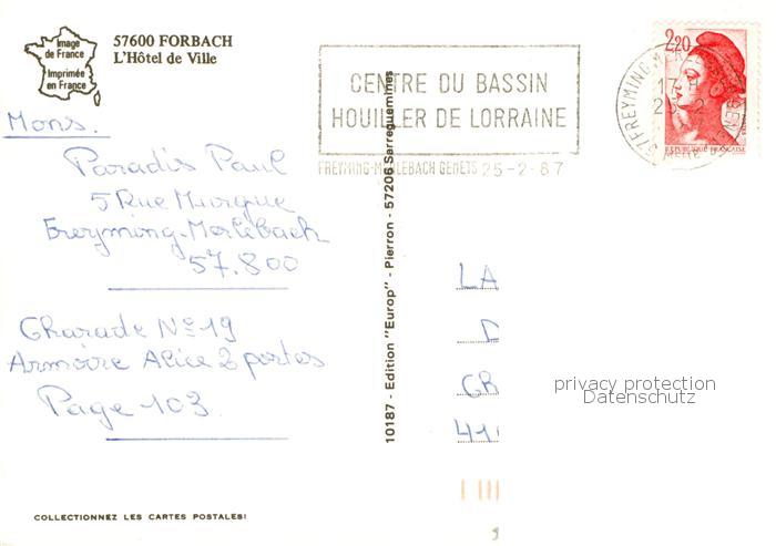 13793430 Forbach 57 Lothringen Hôtel de Ville postalisch gelaufen Erhaltung siehe scans [FriedD77] carte postale Frie Katcode 11170057357227
