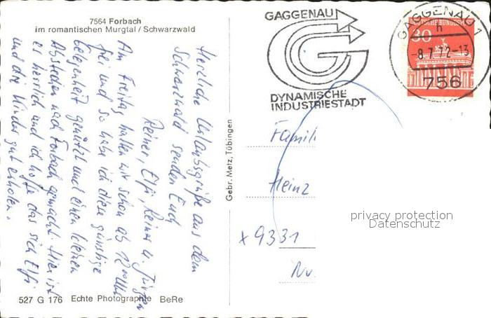 72405251 alte Postkarte Forbach Baden postalisch gelaufen Erhaltung siehe scans KatCode: 11110008216013