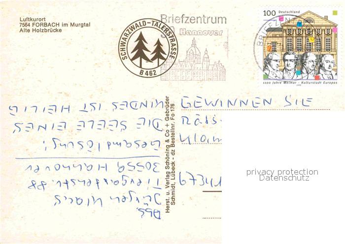 72756108 alte Postkarte Forbach Baden Alte Holzbruecke postalisch gelaufen Erhaltung siehe scans [NatalD47] KatCode: 11110008216013