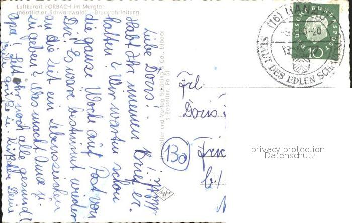 72922440 alte Postkarte Forbach Baden Druckrohrleitung Luftkurort im Murgtal Schwarzwald postalisch gelaufen Erhaltung siehe scans [FriedD46] KatCode: 11110008216013
