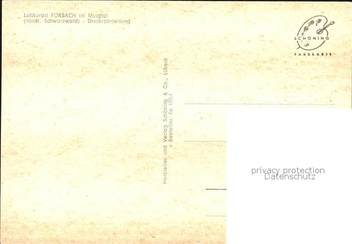 72598486 Forbach Baden Druckrohrleitung postalisch nicht gelaufen Erhaltung siehe scans [LiesaD40] KatCode: 11110008216013