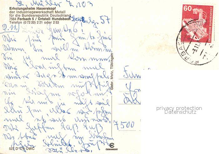 72667247 alte Postkarte Forbach Baden Erholungsheim Hauerskopf postalisch gelaufen Erhaltung siehe scans [LiesaD40] KatCode: 11110008216013
