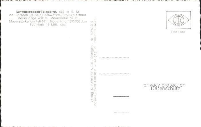 72314106 Forbach Baden Fliegeraufnahme Schwarzenbachtalsperre postalisch nicht gelaufen Erhaltung siehe scans KatCode: 11110008216013