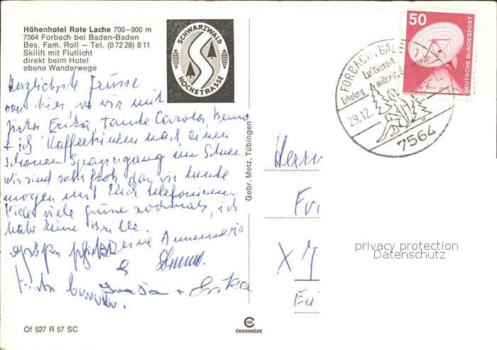 72540480 alte Postkarte Forbach Baden Hoehenhotel Rote Lache postalisch gelaufen Erhaltung siehe scans [LiesaD40 kt122box] KatCode: 11110008216013