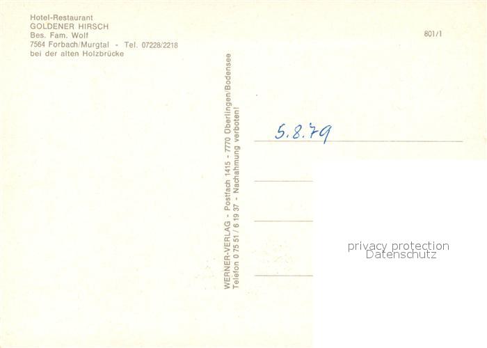 73200743 Forbach Baden Holzbruecke Hotel Goldener Hirsch postalisch nicht gelaufen Erhaltung siehe scans [NatalD47] KatCode: 11110008216013