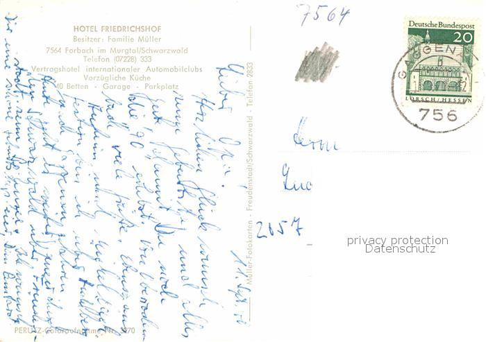 72793605 alte Postkarte Forbach Baden Hotel Friedrichshof Restaurant Holzbruecke postalisch gelaufen Erhaltung siehe scans [FriedD77] KatCode: 11110008216013