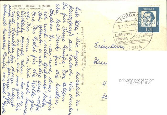 72921197 alte Postkarte Forbach Baden im Murgtal Stausee postalisch gelaufen Erhaltung siehe scans [LiesaD40] KatCode: 11110008216013