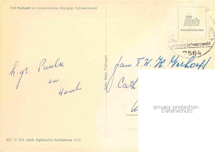 72824828 alte Postkarte Forbach Baden Murgtal postalisch gelaufen Erhaltung siehe scans [LiesaD40] KatCode: 11110008216013