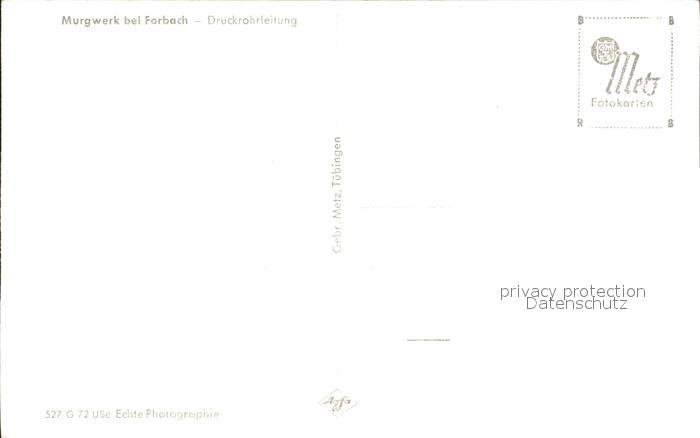 72291717 Forbach Baden Murgwerk Druckrohrleitung postalisch nicht gelaufen Erhaltung siehe scans KatCode: 11110008216013