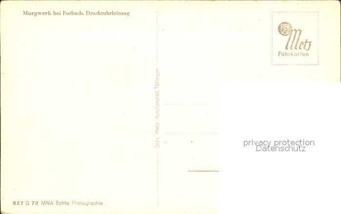 72247023 Forbach Baden Murgwerk Druckrohrleitungen postalisch nicht gelaufen Erhaltung siehe scans KatCode: 11110008216013