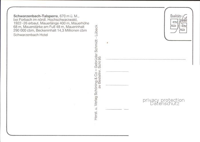 72554711 Forbach Baden Schwarzenbach-Talsperre postalisch nicht gelaufen Erhaltung siehe scans [AndreD76] KatCode: 11110008216013