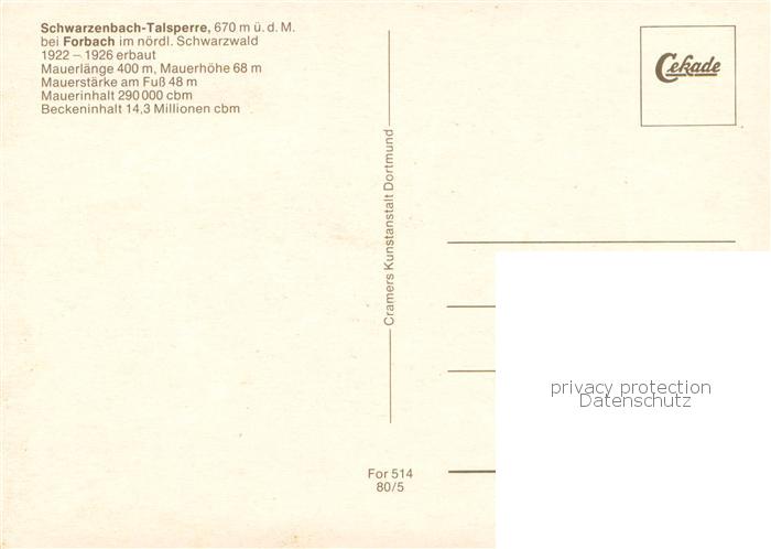 73776758 Forbach Baden Schwarzenbach Talsperre Fliegeraufnahmen postalisch nicht gelaufen Erhaltung siehe scans [WerneD78] KatCode: 11110008216013