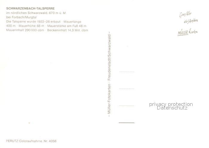 73269043 Forbach Baden Schwarzenbach Talsperre im Schwarzwald Sperrmauer postalisch nicht gelaufen Erhaltung siehe scans [FriedD77] KatCode: 11110008216013