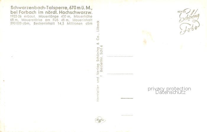 73771852 Forbach Baden Schwarzenbachtalsperre Druckrohrleitung postalisch nicht gelaufen Erhaltung siehe scans [WerneD78] KatCode: 11110008216013