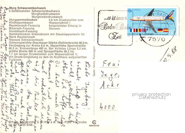 72773615 alte Postkarte Forbach Baden Schwarzenbachtalsperre postalisch gelaufen Erhaltung siehe scans [AndreD76] KatCode: 11110008216013