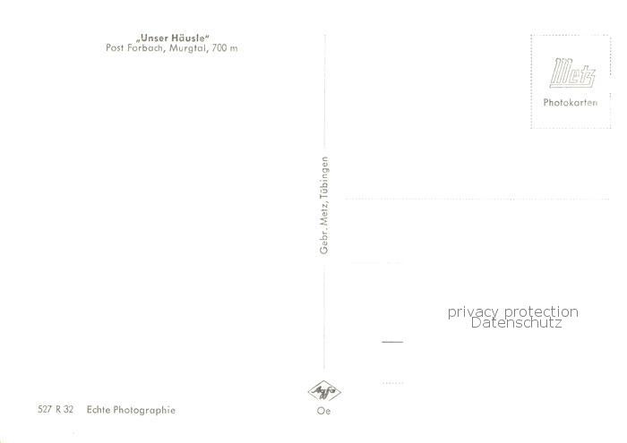 73762922 Forbach Baden Unser Haeusle Gaestehaus am Waldrand postalisch nicht gelaufen Erhaltung siehe scans [FriedD77] KatCode: 11110008216013