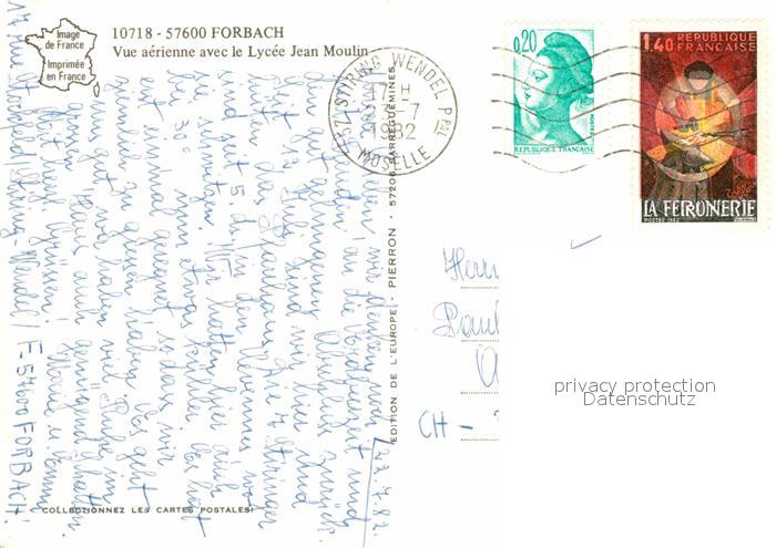 12796804 carte postale Forbach Lothringen Luftaufnahme Panorama postalisch gelaufen Erhaltung siehe scans [KathaD81] KatCode: 11170057357227
