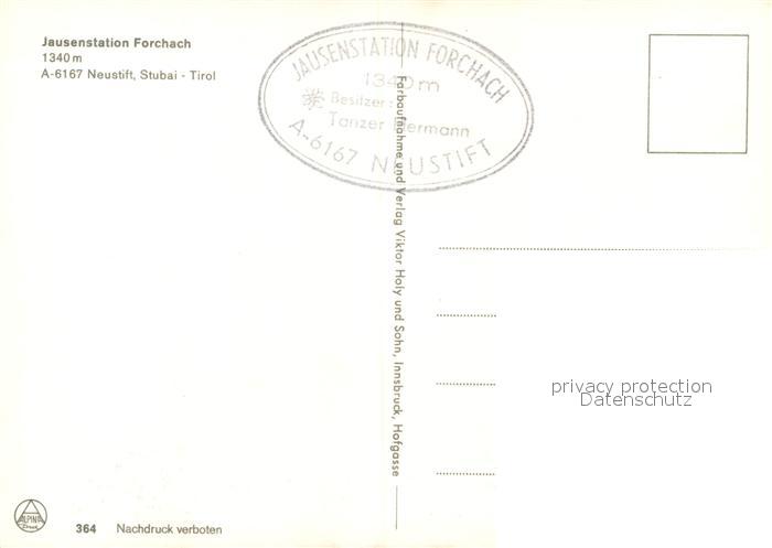 12910358 Forchach Jausestation Neustift postalisch nicht gelaufen Erhaltung siehe scans [AndreD76] KatCode: 11390331070810