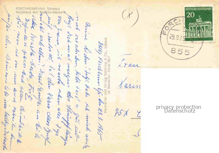 74110437 alte Postkarte Forchheim Oberfranken Hochhaus mit Ypsilon Haeusern postalisch gelaufen Erhaltung siehe scans [WerneD78] KatCode: 11110009474126