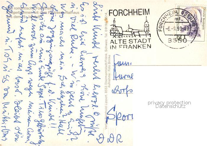 73126687 alte Postkarte Forchheim Oberfranken Kriegerbrunnen Fachwerk Rathaus postalisch gelaufen Erhaltung siehe scans [KathaD81] KatCode: 11110009474126
