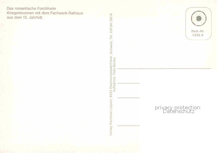 72707292 Forchheim Oberfranken Kriegerbrunnen mit Fachwerk Rathaus Musikkapelle postalisch nicht gelaufen Erhaltung siehe scans [WerneD78] KatCode: 11110009474126