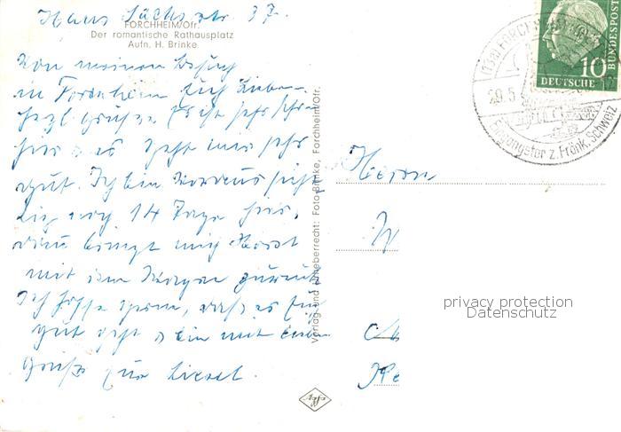 73829802 alte Postkarte Forchheim Oberfranken Romantischer Rathausplatz postalisch gelaufen Erhaltung siehe scans [WerneD78] KatCode: 11110009474126