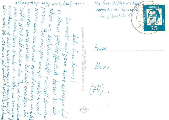 73869731 alte Postkarte Forchheim Rheinstetten Neue Schule Blick zur Kirche Partie am Rathaus postalisch gelaufen Erhaltung siehe scans [FriedD77] KatCode: 11110008215108
