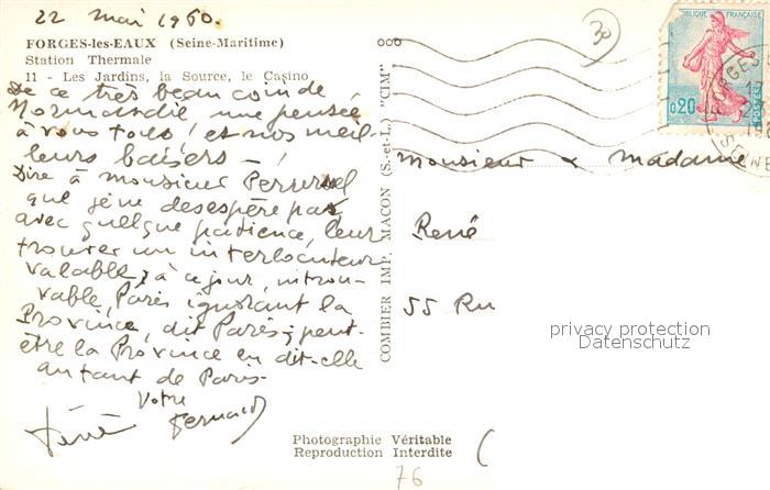 13492047 carte postale Forges-les-Eaux Station Thermale Les Jardins la Source le Casino postalisch gelaufen Erhaltung siehe scans [FriedD77] KatCode: 11170076176276