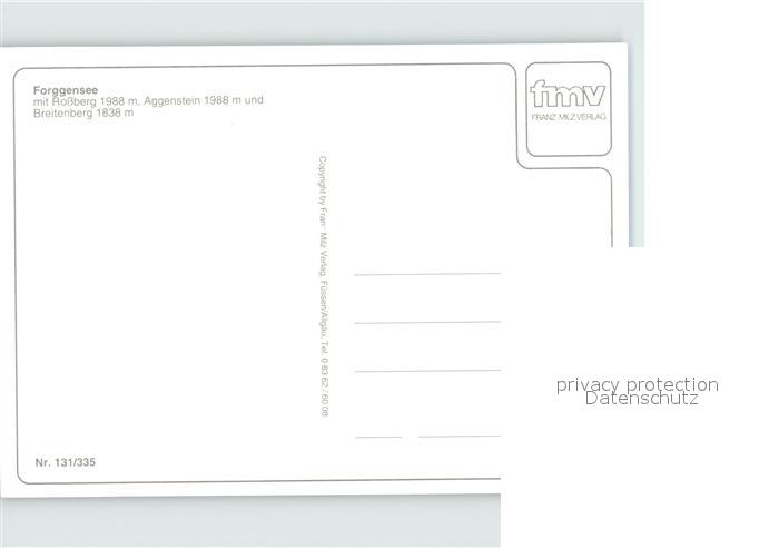72431731 Forggensee Schwangau Rossberg Aggenstein Breitberg postalisch nicht gelaufen Erhaltung siehe scans KatCode: 11110009777169