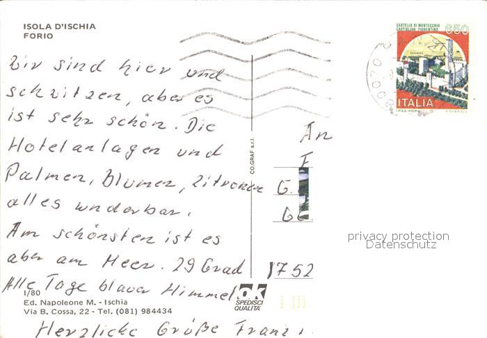 old postcard Forio d Ischia postalisch gelaufen Erhaltung siehe scans