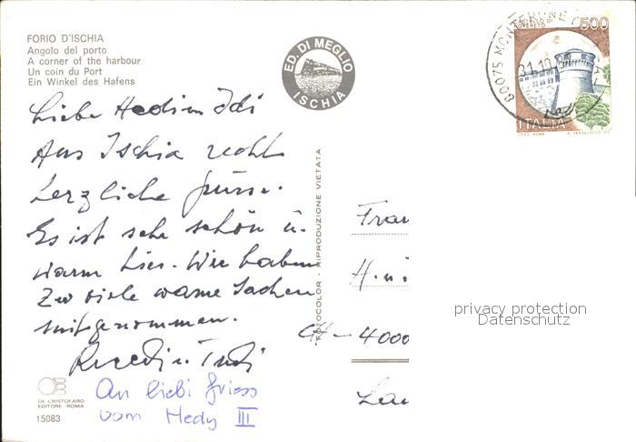 old postcard Forio d Ischia Angolo del porto Chiesa Hafen Kirche postalisch gelaufen Erhaltung siehe scans