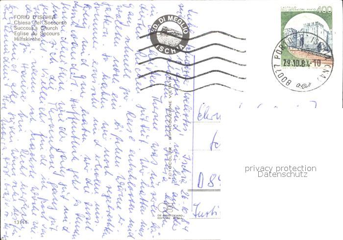 old postcard Forio d Ischia Chiesa Soccorso postalisch gelaufen Erhaltung siehe scans
