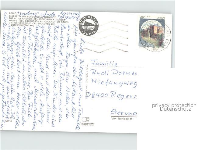 old postcard Forio d Ischia Chiesetta postalisch gelaufen Erhaltung siehe scans