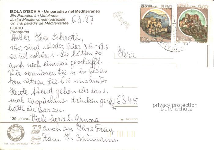 old postcard Forio d Ischia Fliegeraufnahme postalisch gelaufen Erhaltung siehe scans