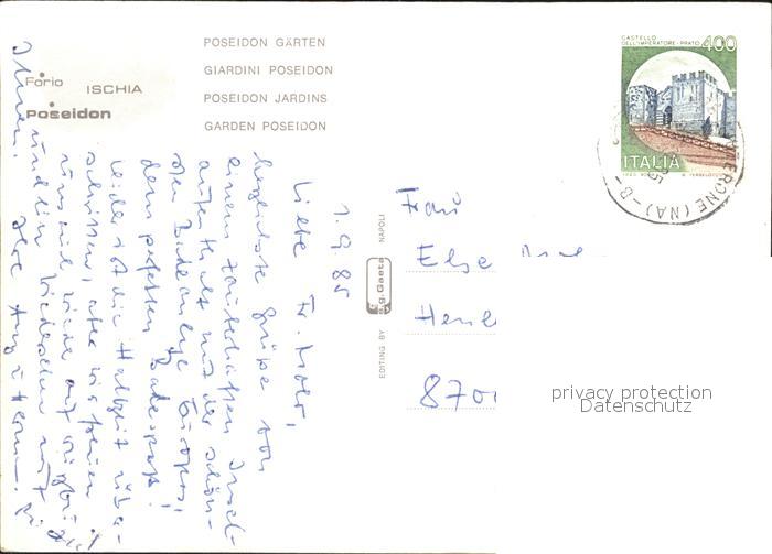 old postcard Forio d Ischia Giardini Poseidon Gaerten Swimming Pool postalisch gelaufen Erhaltung siehe scans