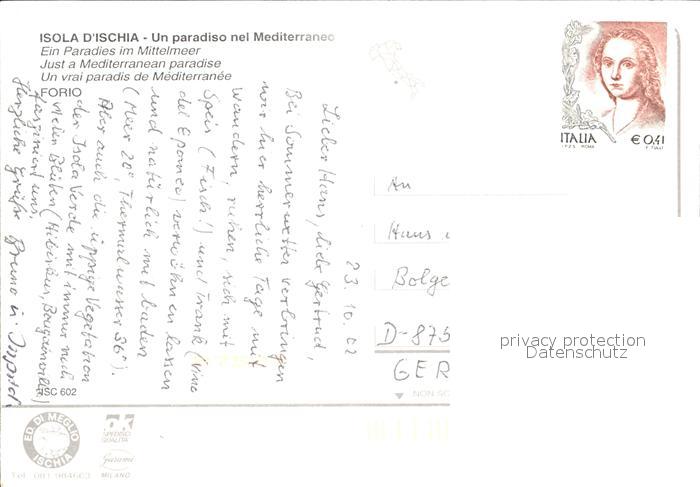 old postcard Forio d Ischia Hafen Promenade postalisch gelaufen Erhaltung siehe scans