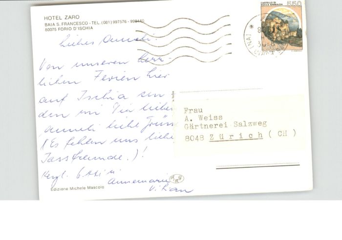 old postcard Forio D Ischia Hotel Zaro Baia S. Francesco postalisch gelaufen