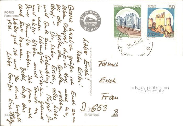 old postcard Forio d Ischia Panorama postalisch gelaufen Erhaltung siehe scans
