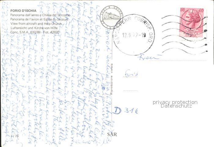 old postcard Forio d Ischia Panorama dall aereo Chiesa del Soccorso postalisch gelaufen Erhaltung siehe scans