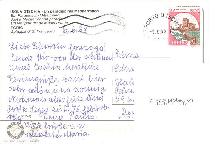 old postcard Forio d Ischia Panorama Isola Verde Spiaggia di San Francesco Palmen postalisch gelaufen Erhaltung siehe scans
